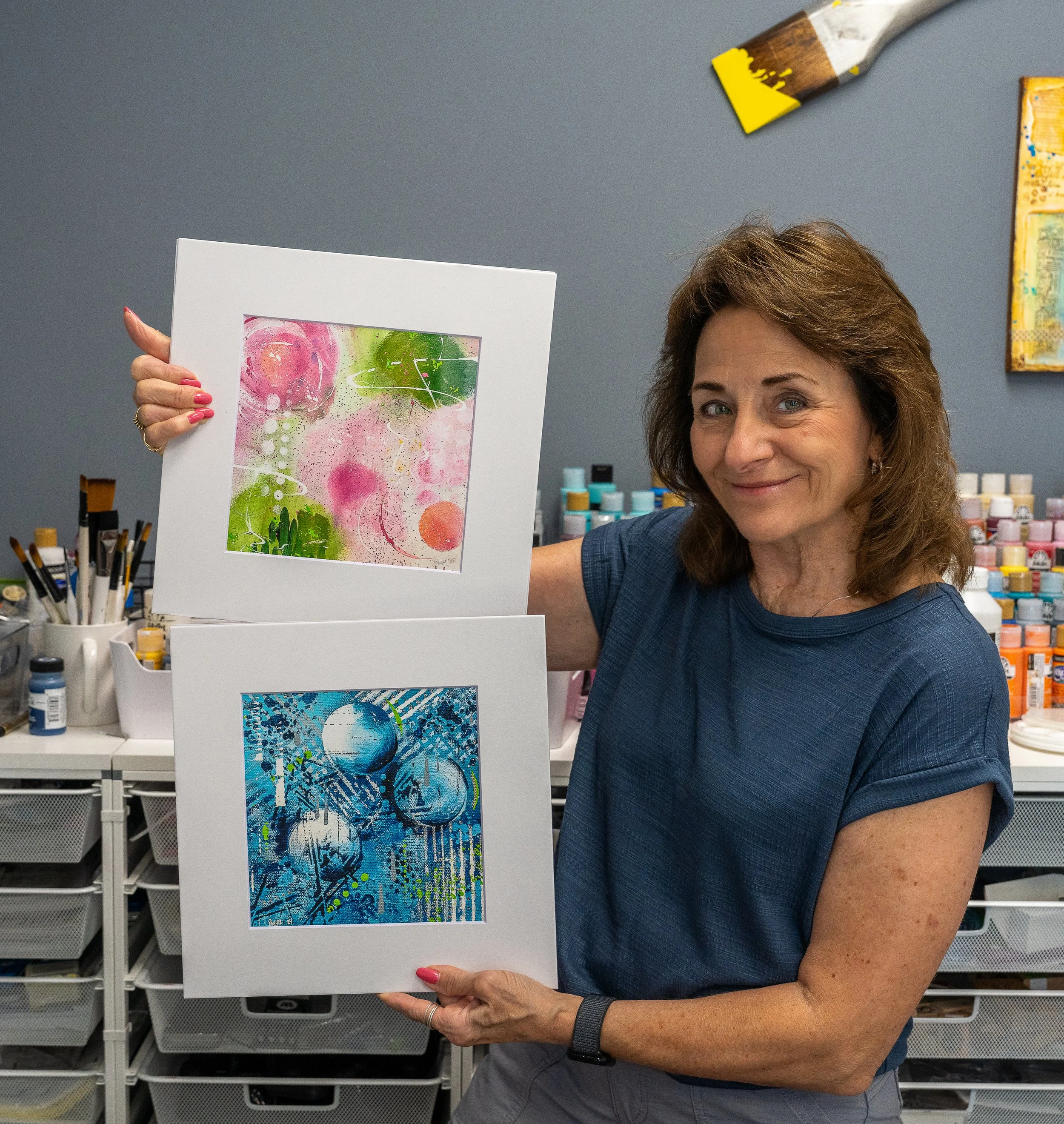 Painting has always been part of my life. Over the years I’ve worked in many mediums, continually exploring color, texture, and form. Today my work centers on abstract mixed media, combining acrylic, ink, and pastels to create layered compositions that are expressive, intuitive, and open to interpretation.